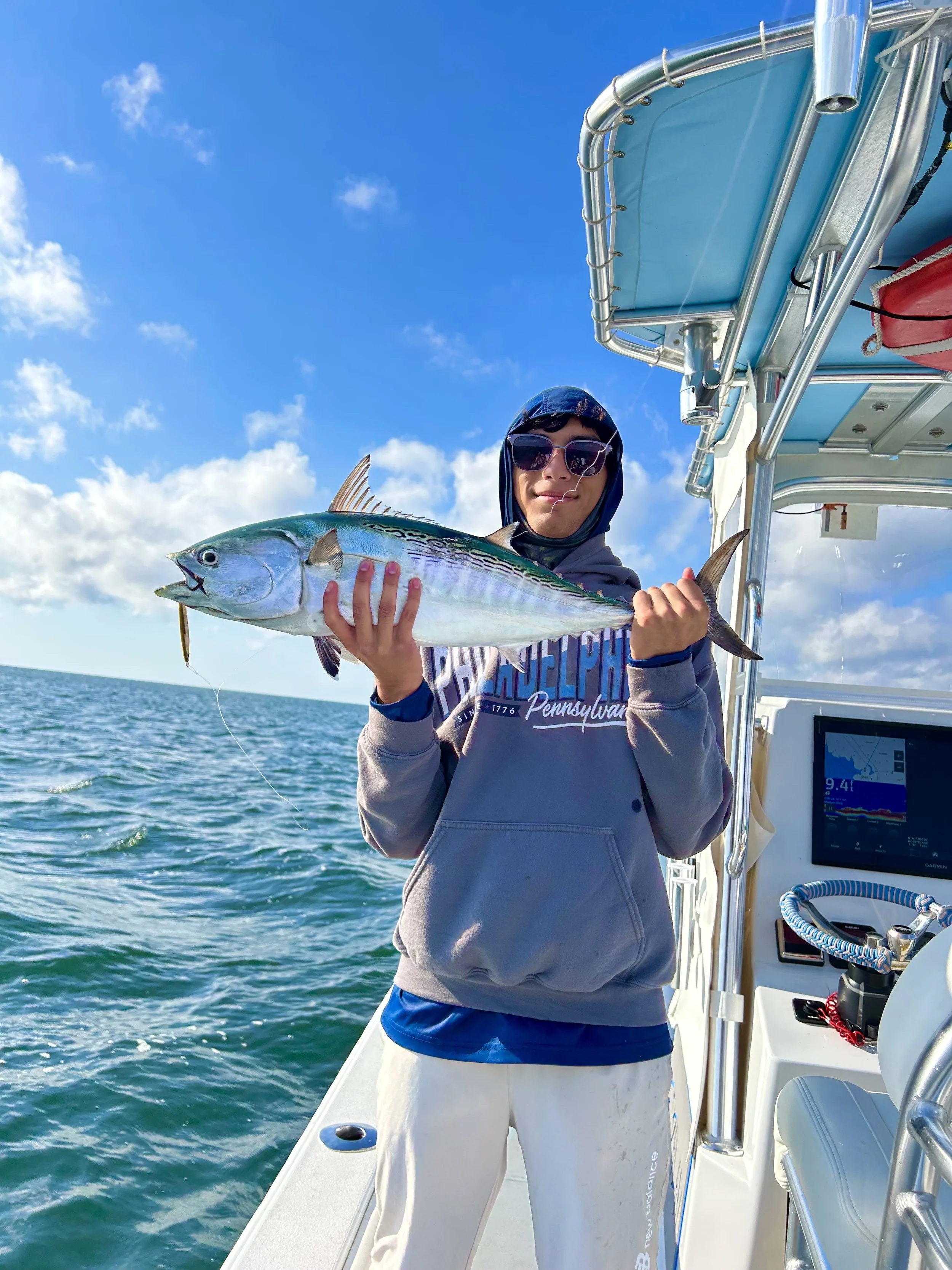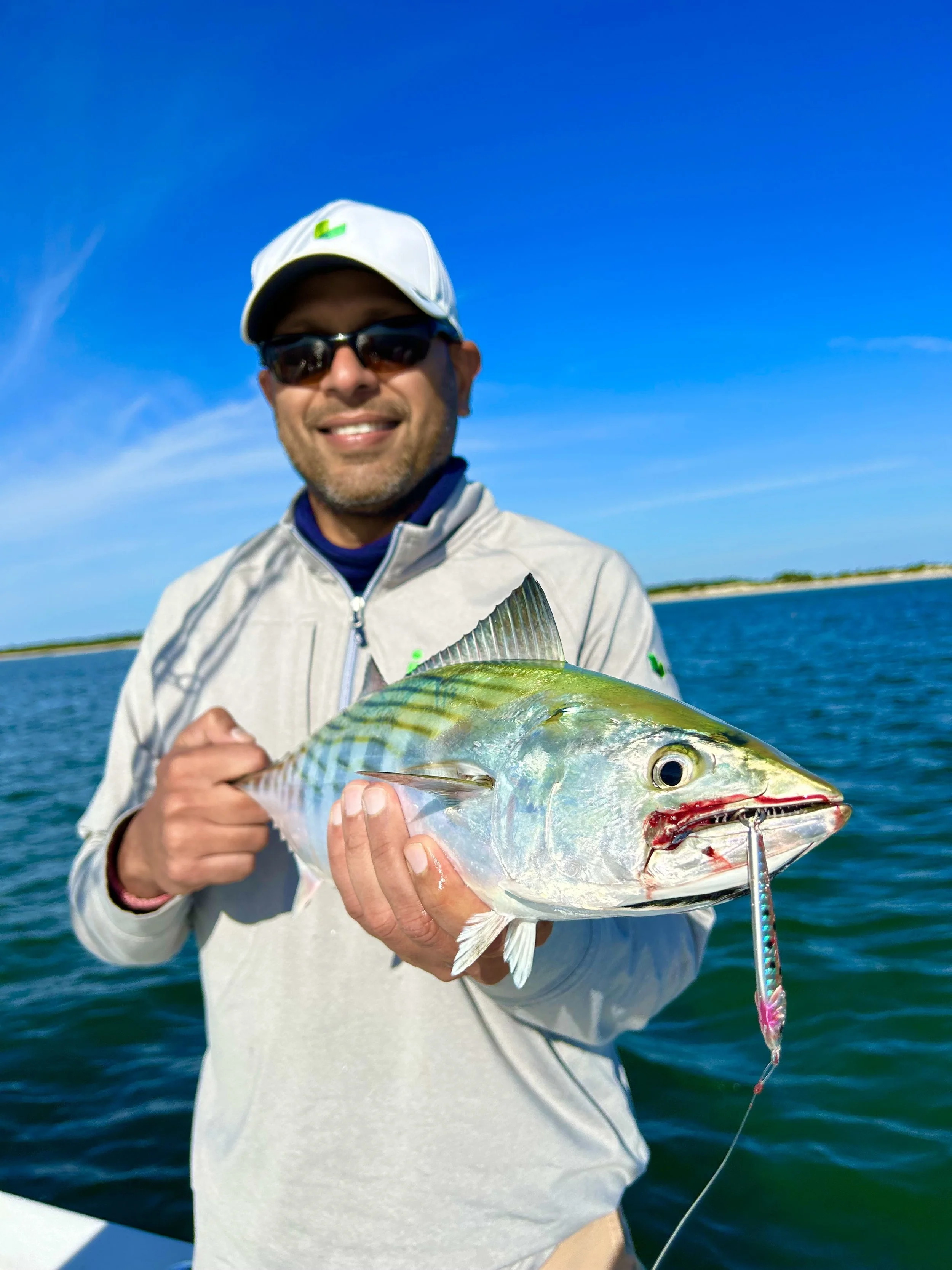 Tactics vary by season and tailored upon request. Can accommodate 14-16wt Fly, Spinning “jig & pop” as well as conventional gear and light tackle trolling for tuna.