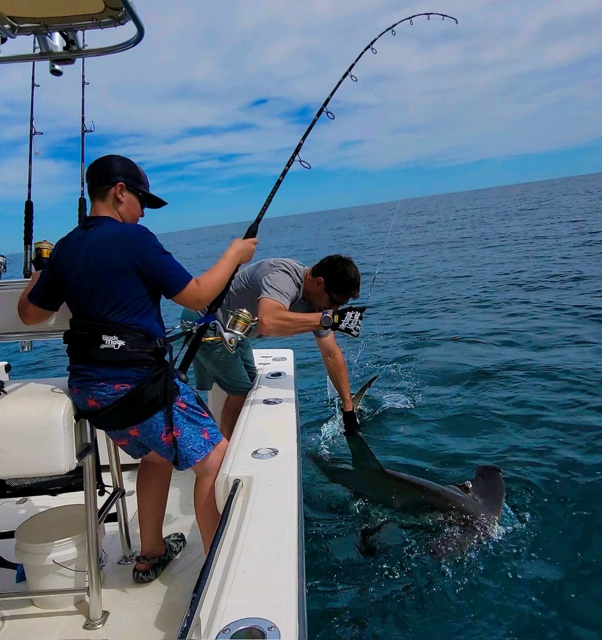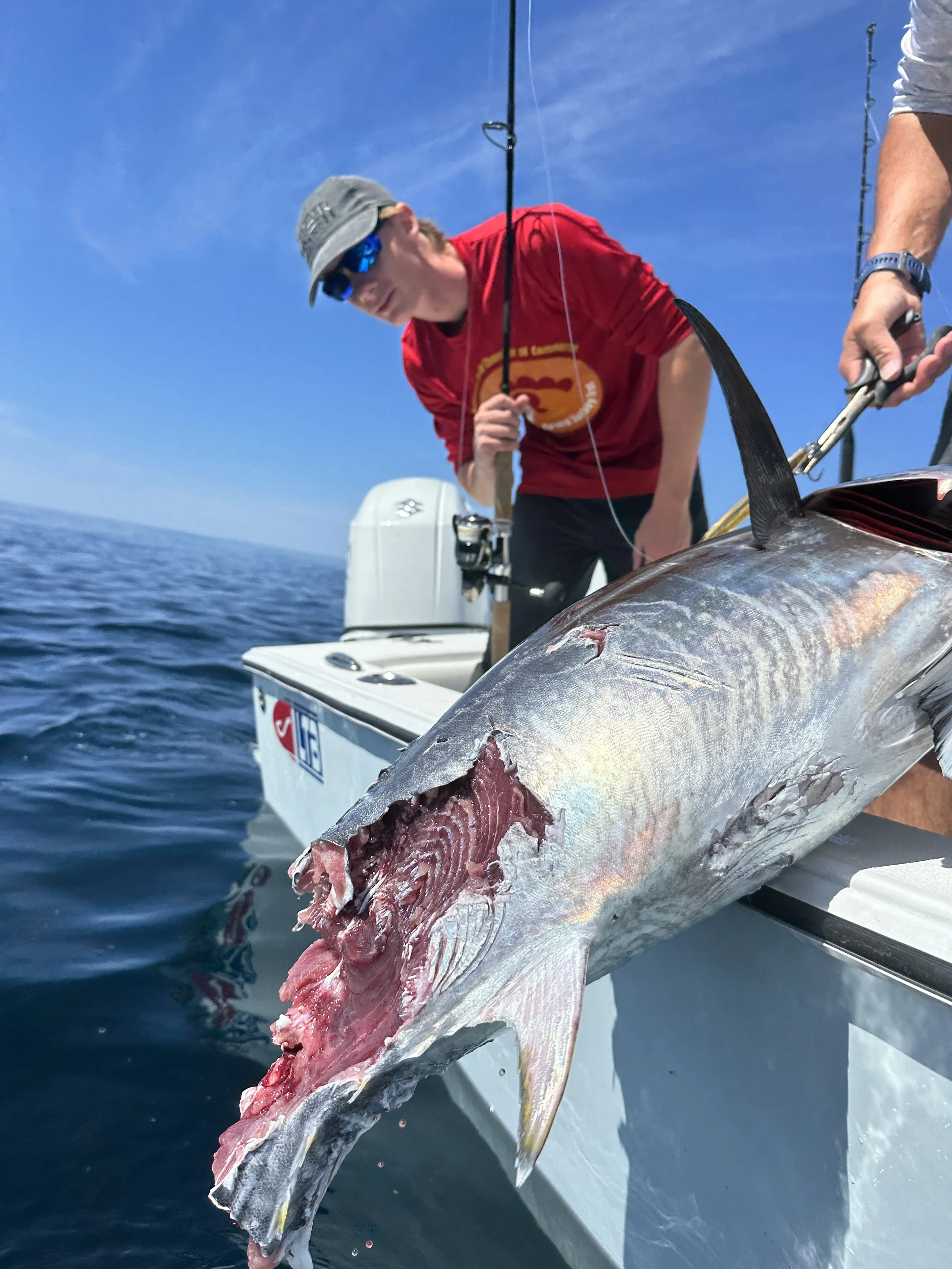 Tactics and species evolve with the seasons running April through November. April starts things off with Tautog or Cod & Haddock. May brings squid and Striped Bass, as well as Bluefish. June adds Black Sea Bass and Scup as well as Fluke and near shore sharks (see below!). Late summer hardtails in August with Bonito, False Albacore, and the occasional Spanish Mackerel before the season reverses as the air turns crisp and leaves turn in October. The inshore season ends again with Tautog in November.